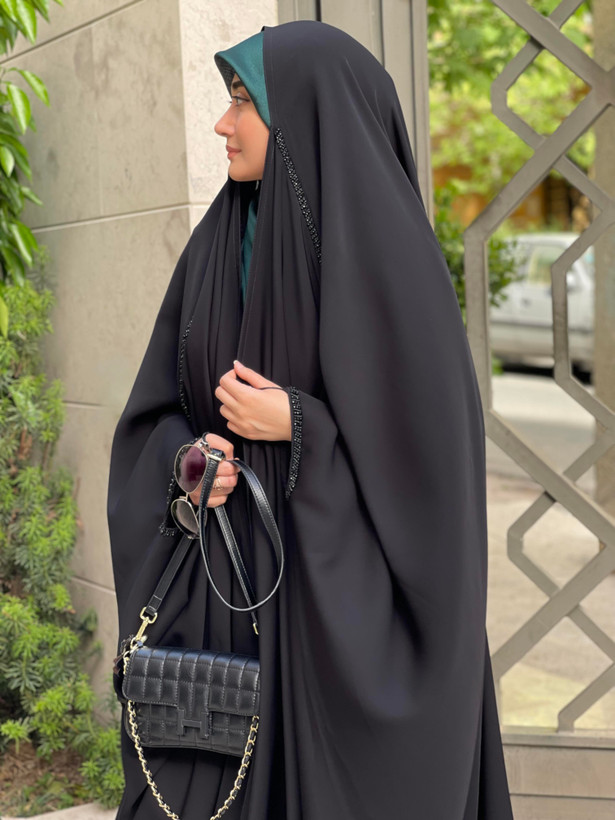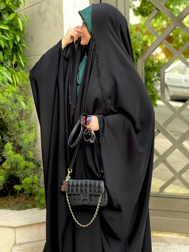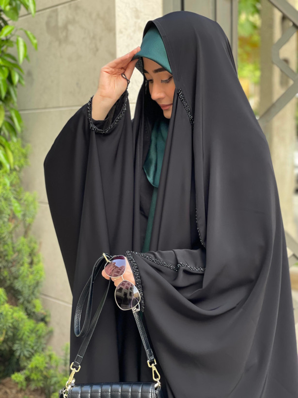 دارای جواهردوزی منحصر به فرده و تمام کریستال ها با دست دوخته شده و جلوه فوق العاده زیبایی به چادر داده و براقیت جذابی داره، این کریستال ها اصلا چادر رو سنگین نمیکنن.